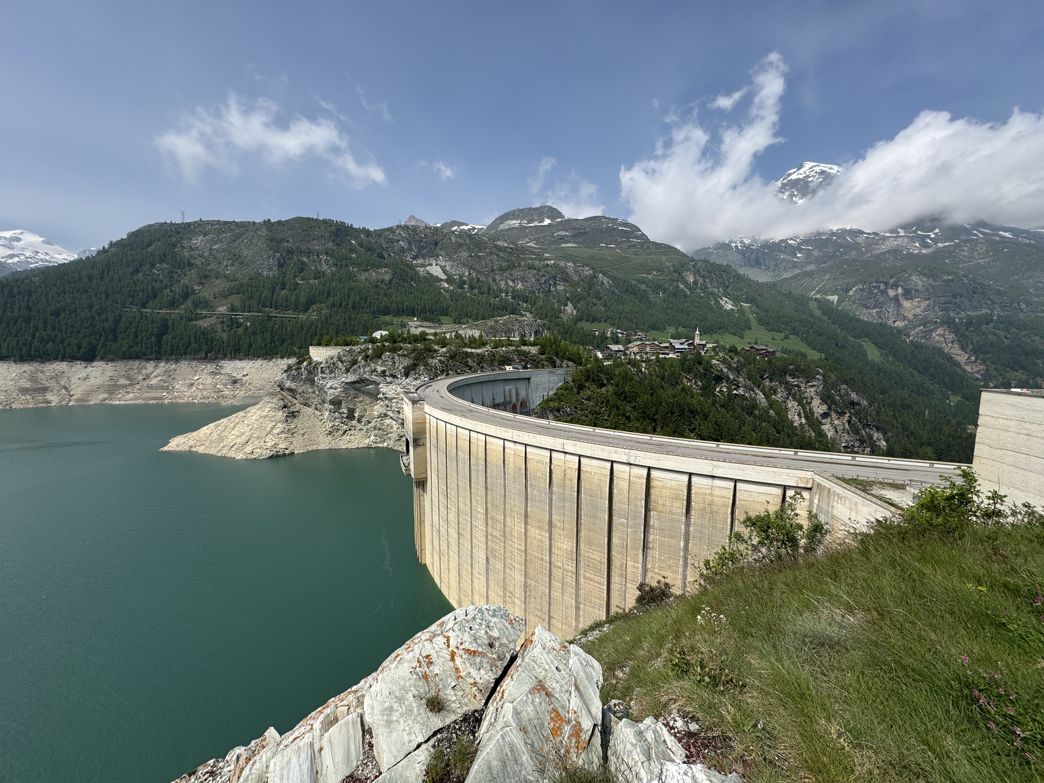 Wir ziehen das Tal hinauf hoch zum Col d’Iseran, vorbei am Lac de Chevrill und der eindrücklichen Staumauer die ihn zurückstaut. Durchfahrt in Val d’Isere, das noch ausgestorben scheint und das ist gut für uns, freie Fahrt, Köpfe runter und Vollgas nach oben. Yesssss, we did it!