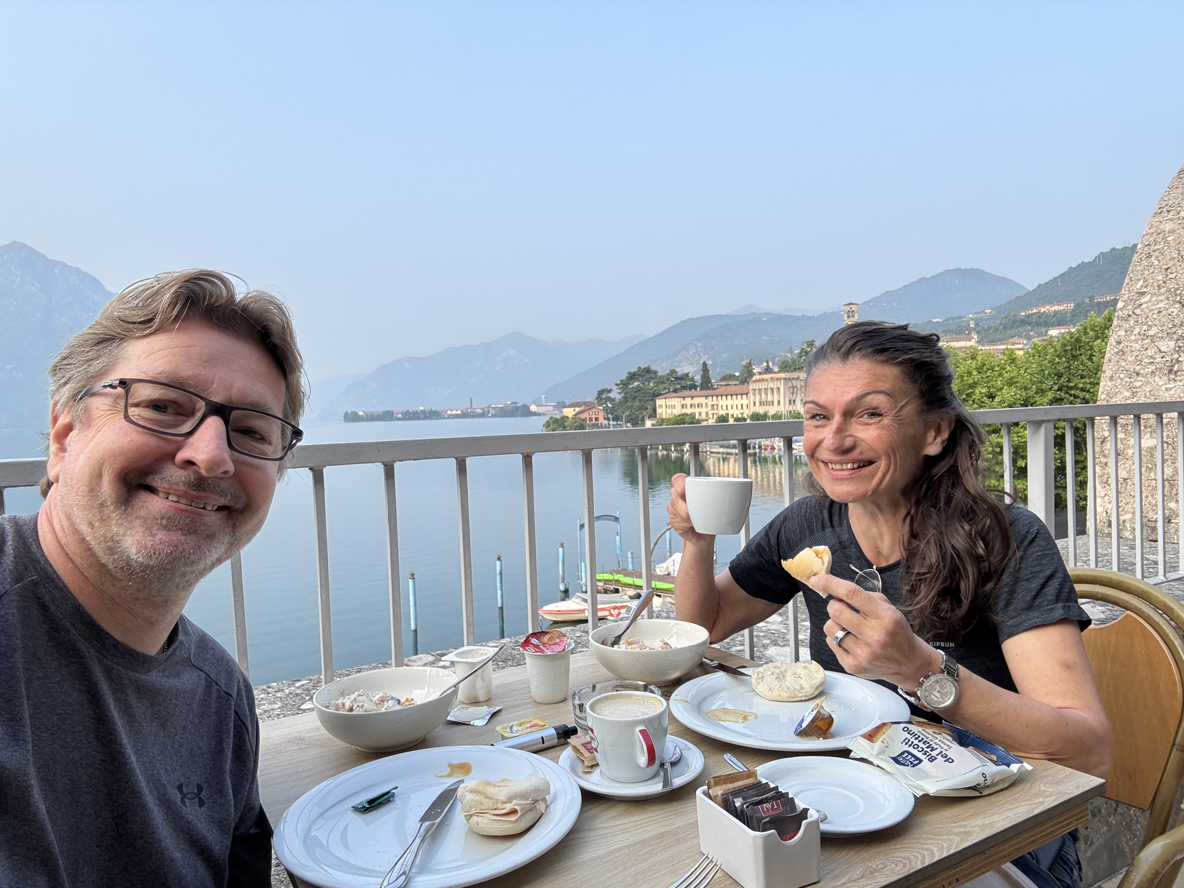 Gestartet sind wir heute früh in Lovere nach einem wunderbaren Frühstück auf der Terrasse des Hotel Lovere direkt mit Blick auf den Lago d‘Iseo.