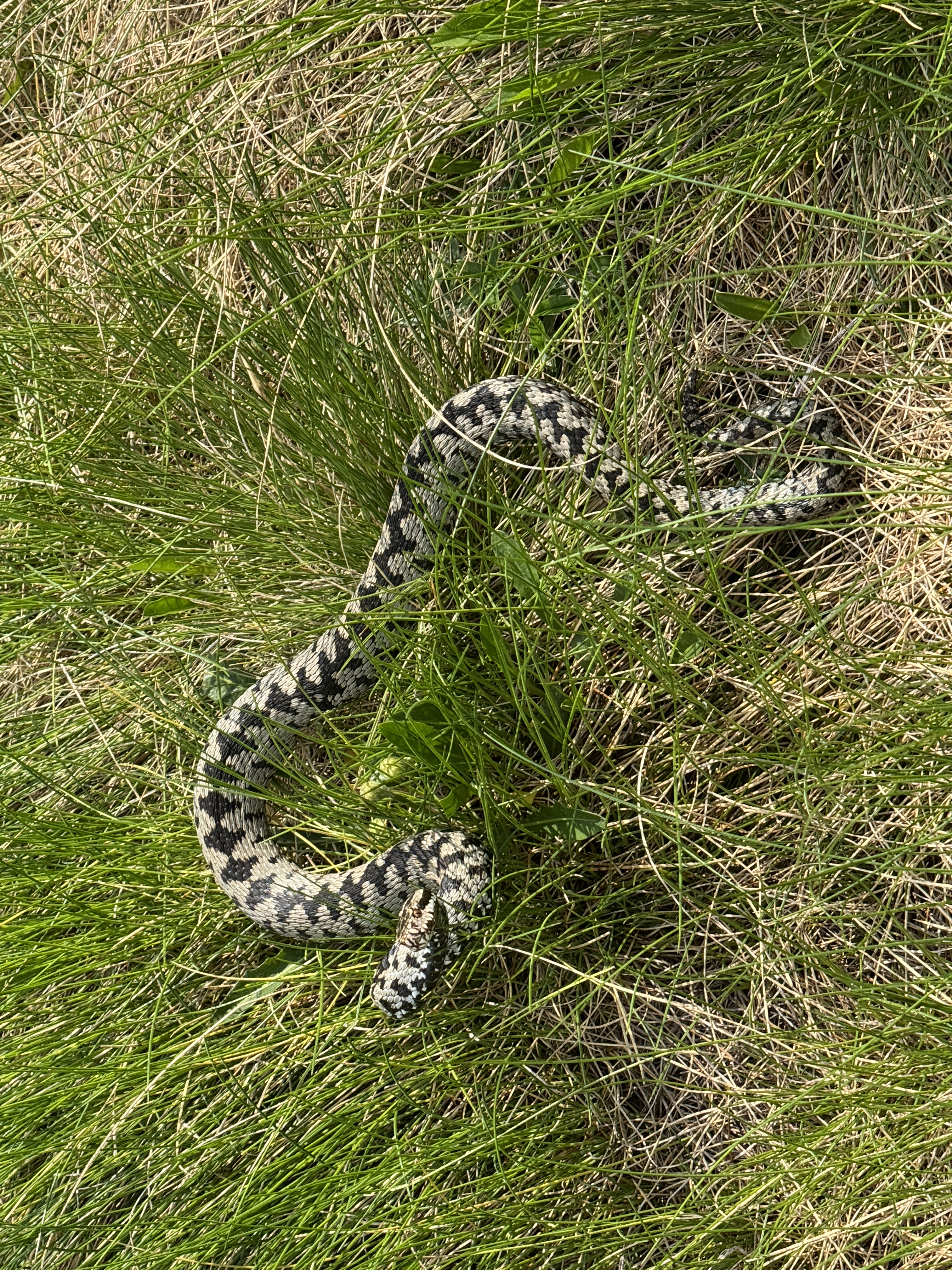 Zuerst stiegen wir eine wunderschöne, sehr kurvenreiche Strasse zum Passo Viviane hinauf. Oben erwartete uns eine wunderschöne Hochebene mit einem kleinen See und ganz viel Natur. Neben der strahlenden Sonne und dem blauen Himmel zeigten sich auch seltene Gäste in der Wiese wie zum Beispiel die Kreuzotter.