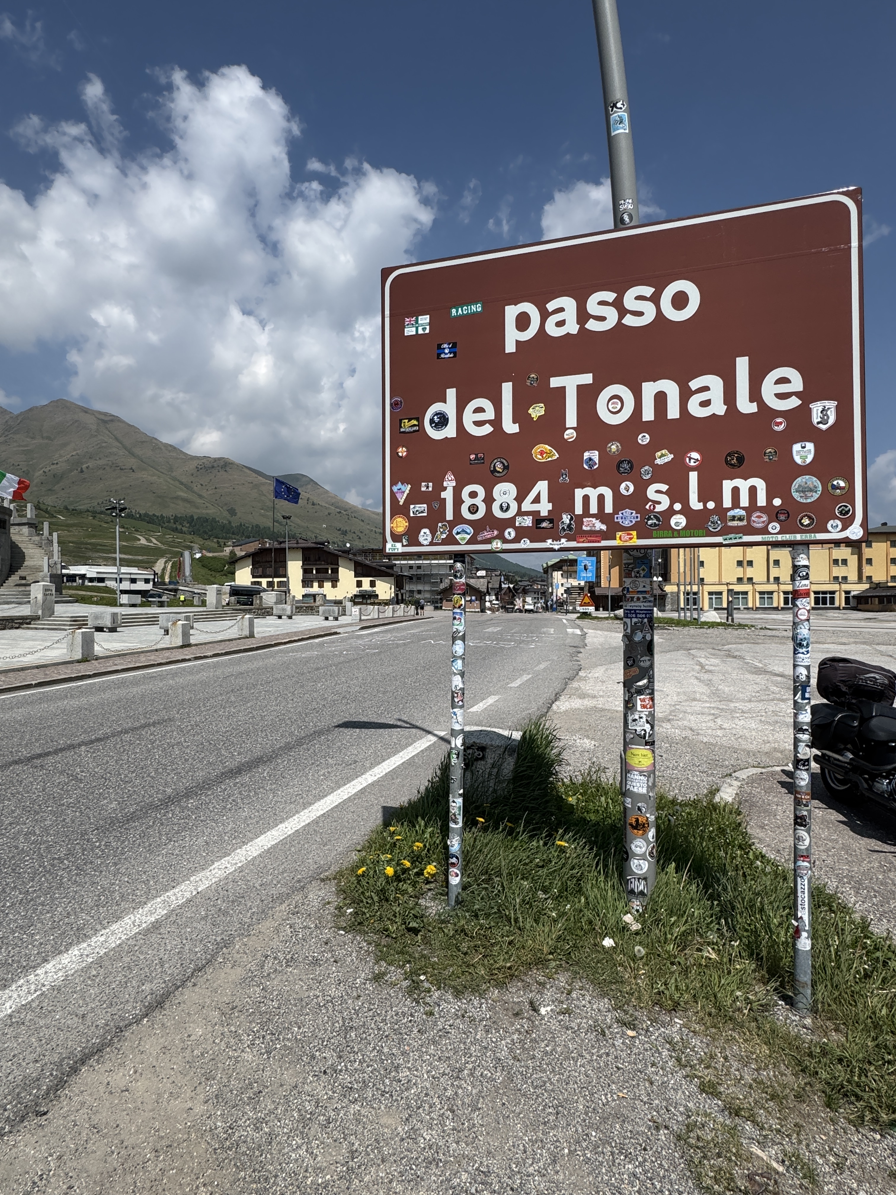 Dann folgte das Highlight des heutigen Tages. Wir stiegen hoch auf zum Gaviapass und kehrten anschliessend über den Passo Tonale zurück in die Ebene. Trient liessen wir dabei rechts von uns liegen und erreichten kurze Zeit später unser heutiges Tagesziel das Hotel Cristallo in Levico Therme wo wir morgen unseren ersten fahrfreien Tag geniessen werden.