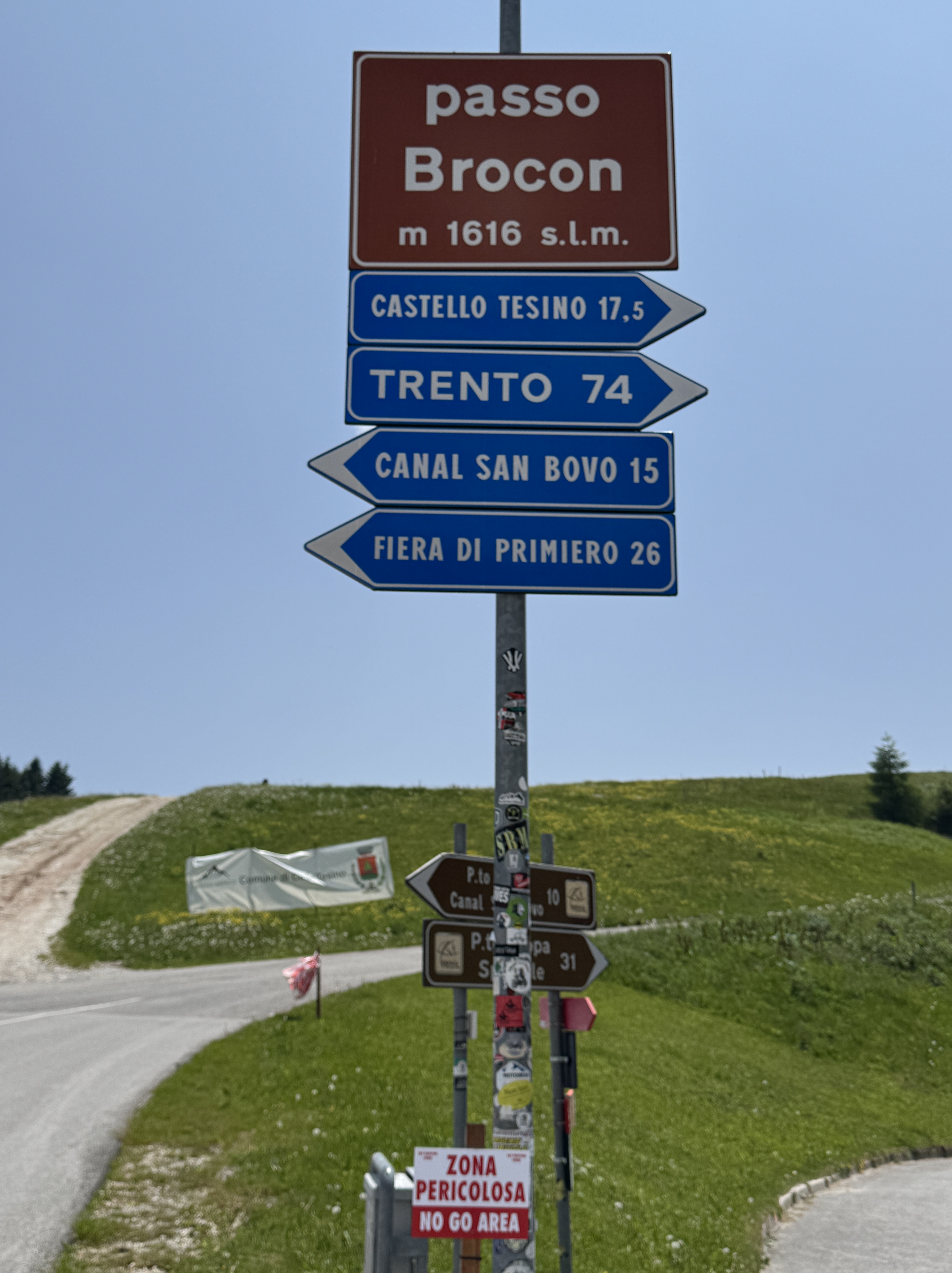 Dann ging’s richtig los: Croce d’Aune, Col delle Bagole, Brocon, Gobbera, Rollepass, Valles und zum Schluss der Passo San Pellegrino – als wär’s noch nicht genug.