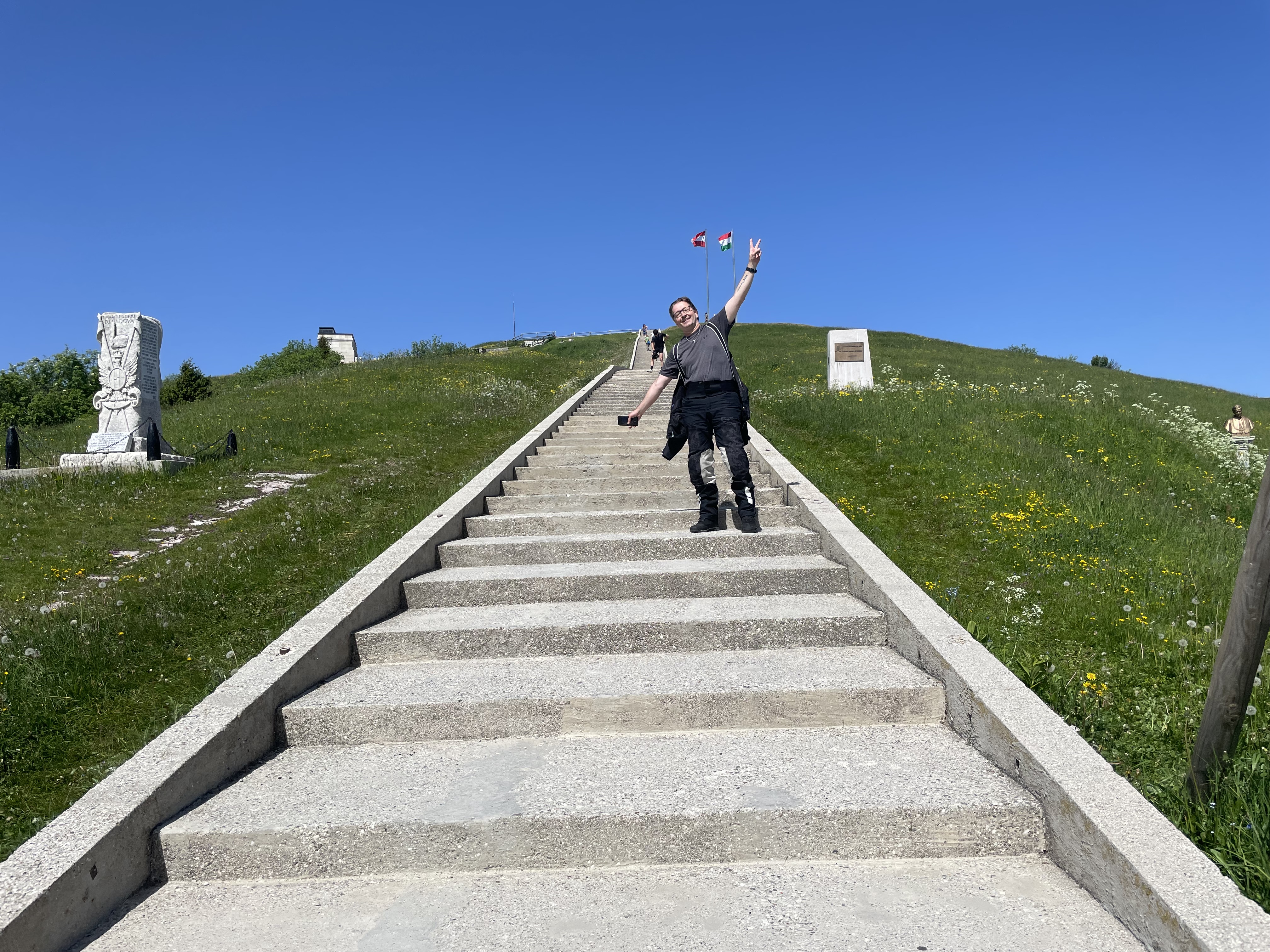 Oben angekommen habe ich natürlich tapfer die gefühlt tausend Stufen zum Denkmal erklommen – in voller Montur, versteht sich. Dafür gabs oben eine fantastische Aussicht als Belohnung.