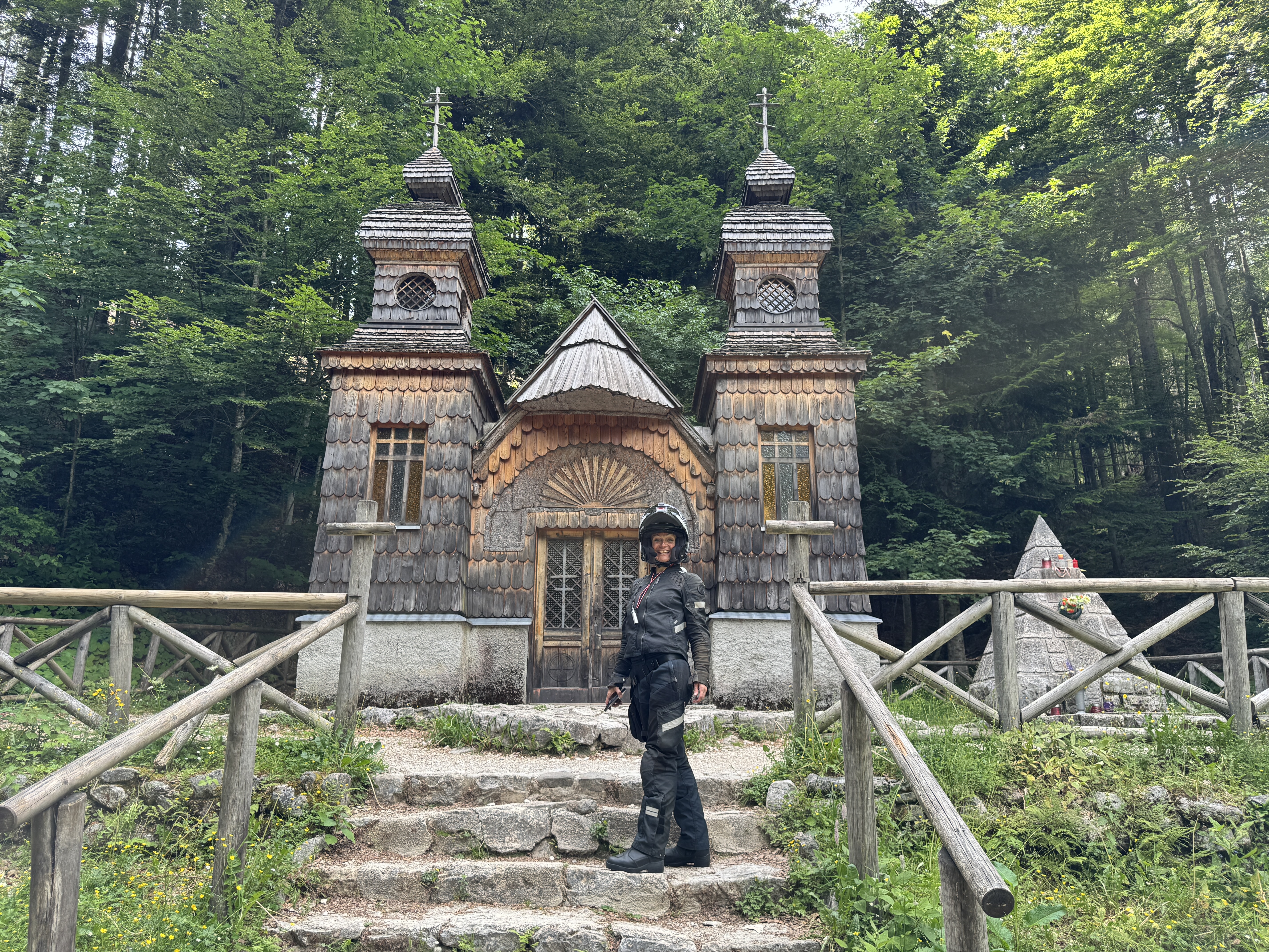 Frisch bereift, weiter über den Wurzenpass nach Kranjska Gora. Vorbei an der russischen Kapelle (eher versteckt im Wald, aber sehr schön), ging’s zum Highlight des Tages: dem Vršičpass – der heilige Gral für alle Serpentinen-Fans.