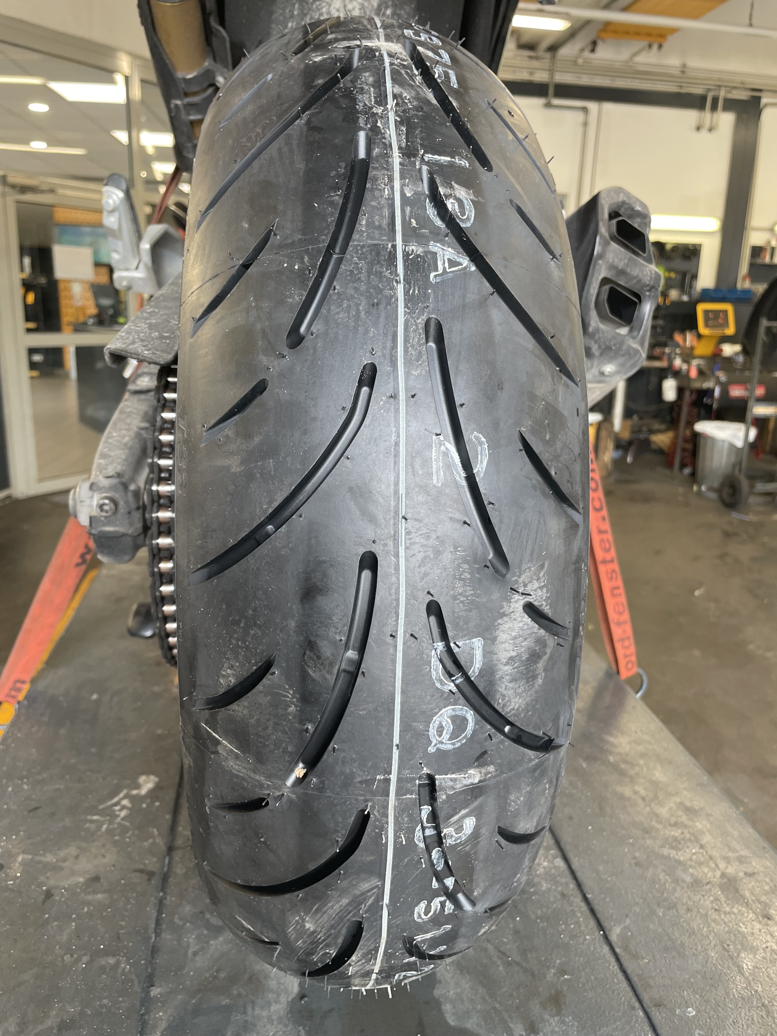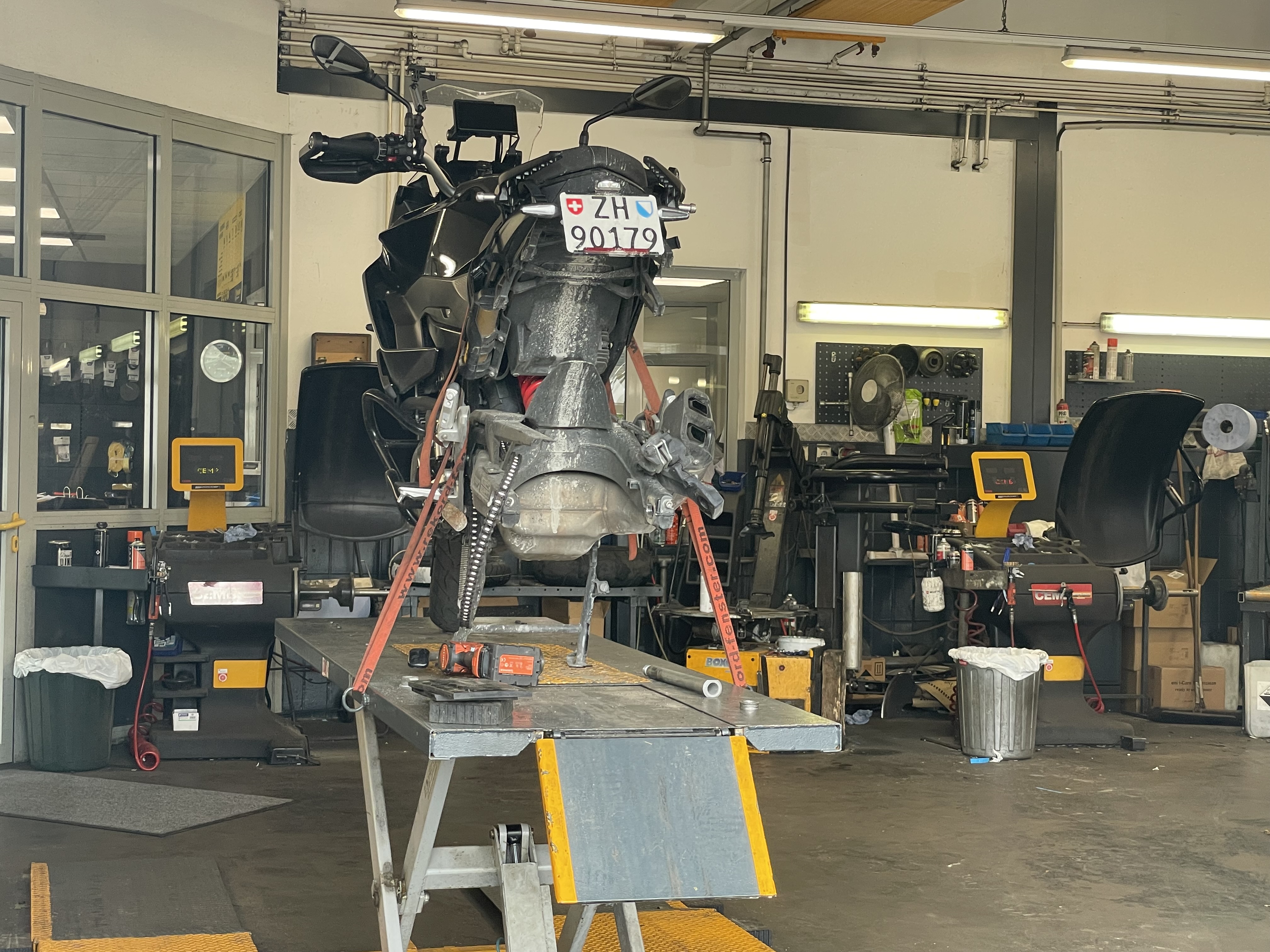Also: Plan B! Kurzfristig einen Schlenker nach Villach eingebaut, telefonisch zwei neue Reifen bestellt und einen Montagetermin bei Plankenauer klargemacht. Top Service! Als wir ankamen, war alles vorbereitet – und nach 45 Minuten hatte Marions Moped wieder schicke neue Schlappen.