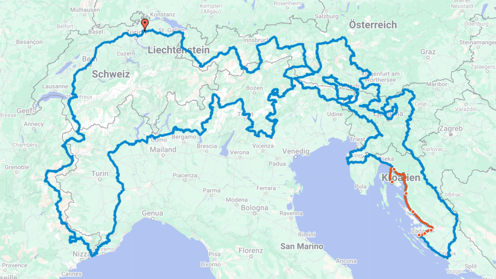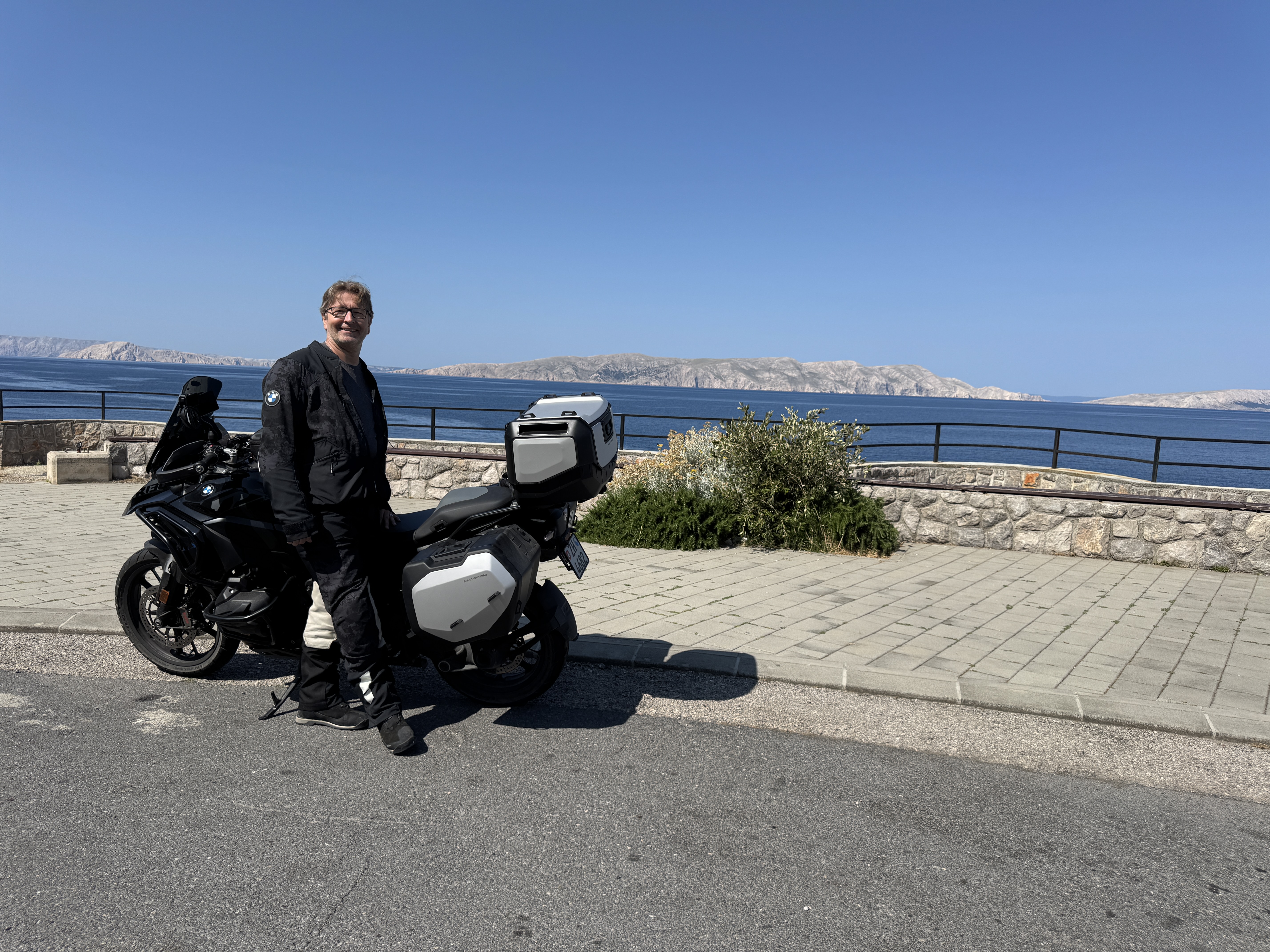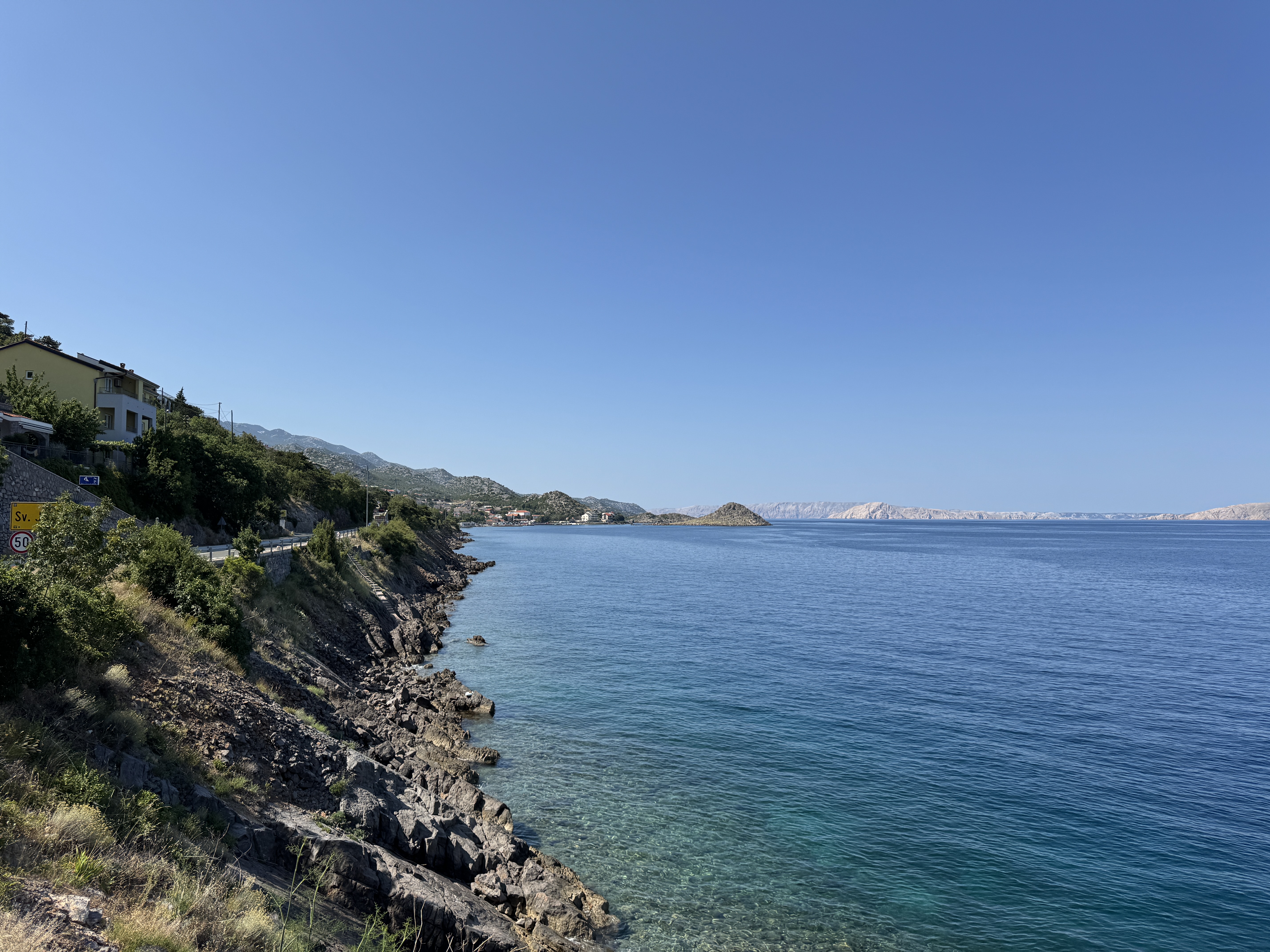 Zuerst fuhren wir zurück über die Insel und überquerten die beeindruckende Krk-Brücke aufs Festland. Entlang der traumhaften Küstenstrasse rollten wir Richtung Süden – herrlich kurvig, herrlich blau.