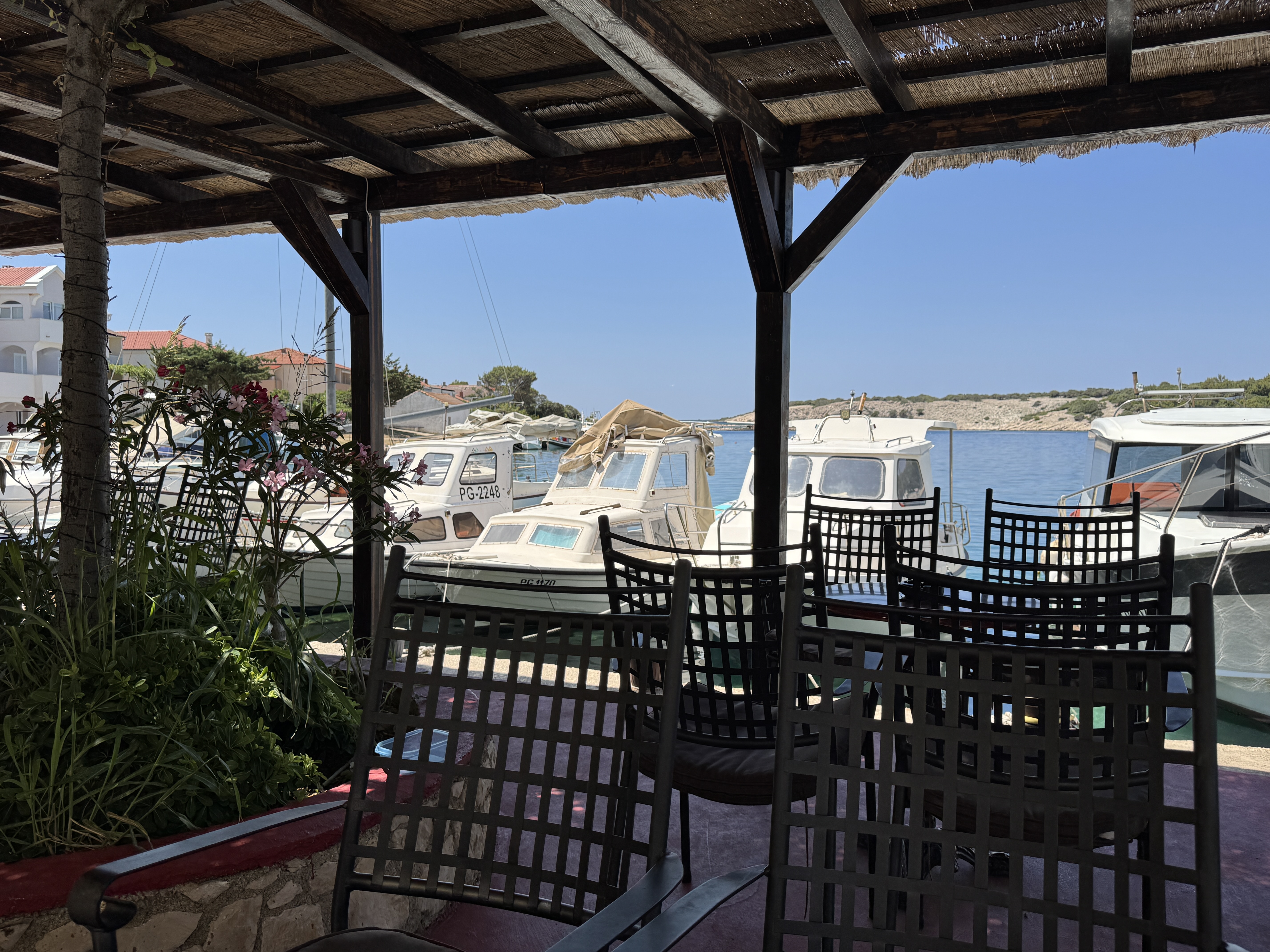 In einem kleinen Fischerdörfchen gönnten wir uns eine Erfrischung, bevor es mit Navi-Track in die Tiefen Pags ging – abseits der Teerstrasse. Schotterpiste, Sand, Schlaglöcher … unsere Motorräder und wir mussten uns ganz schön ranhalten um nicht in einem dar Schlaglöcher stecken zu bleiben. 🤪 Aber: alles gut gegangen – und die Natur war’s wert!