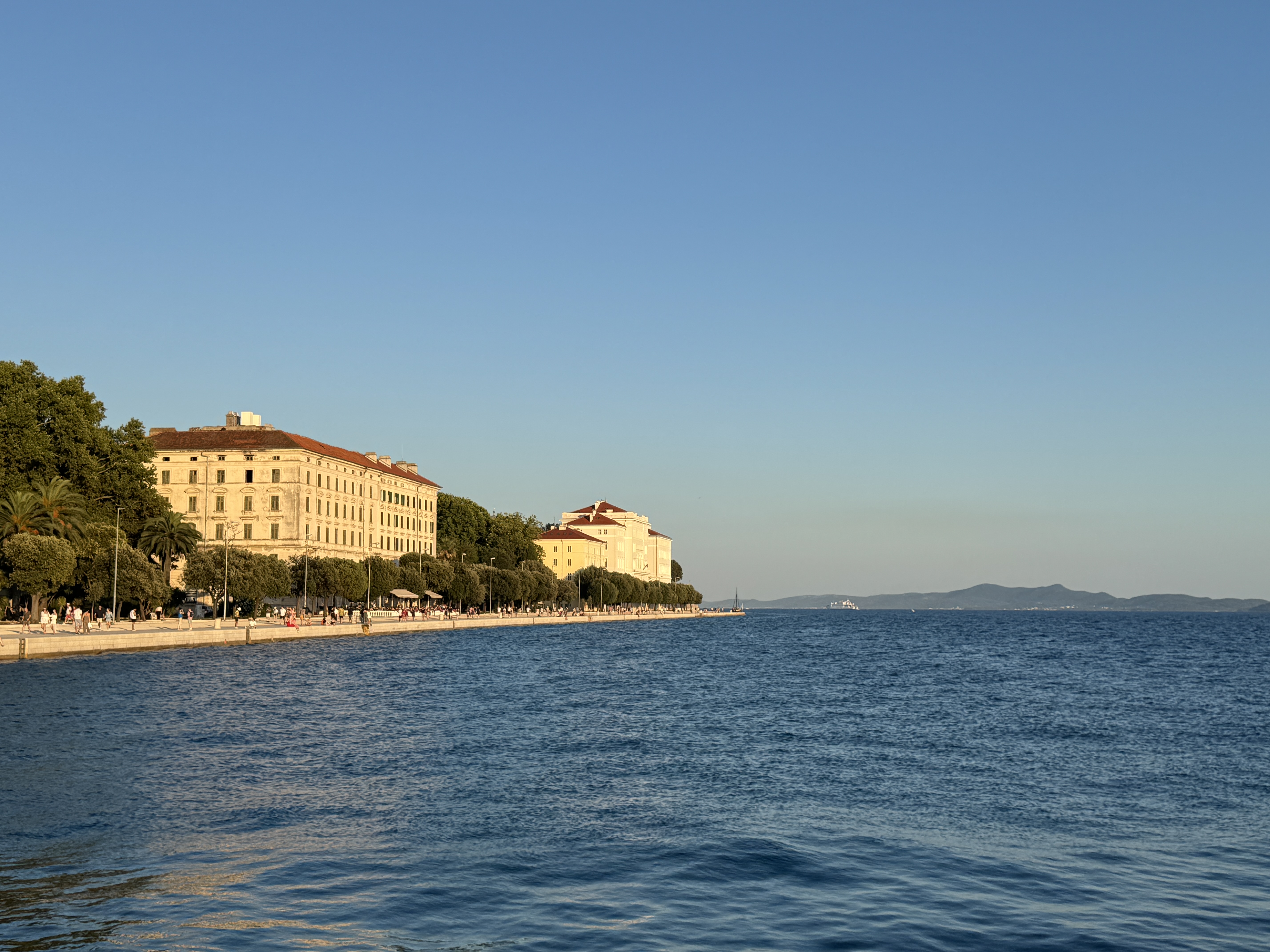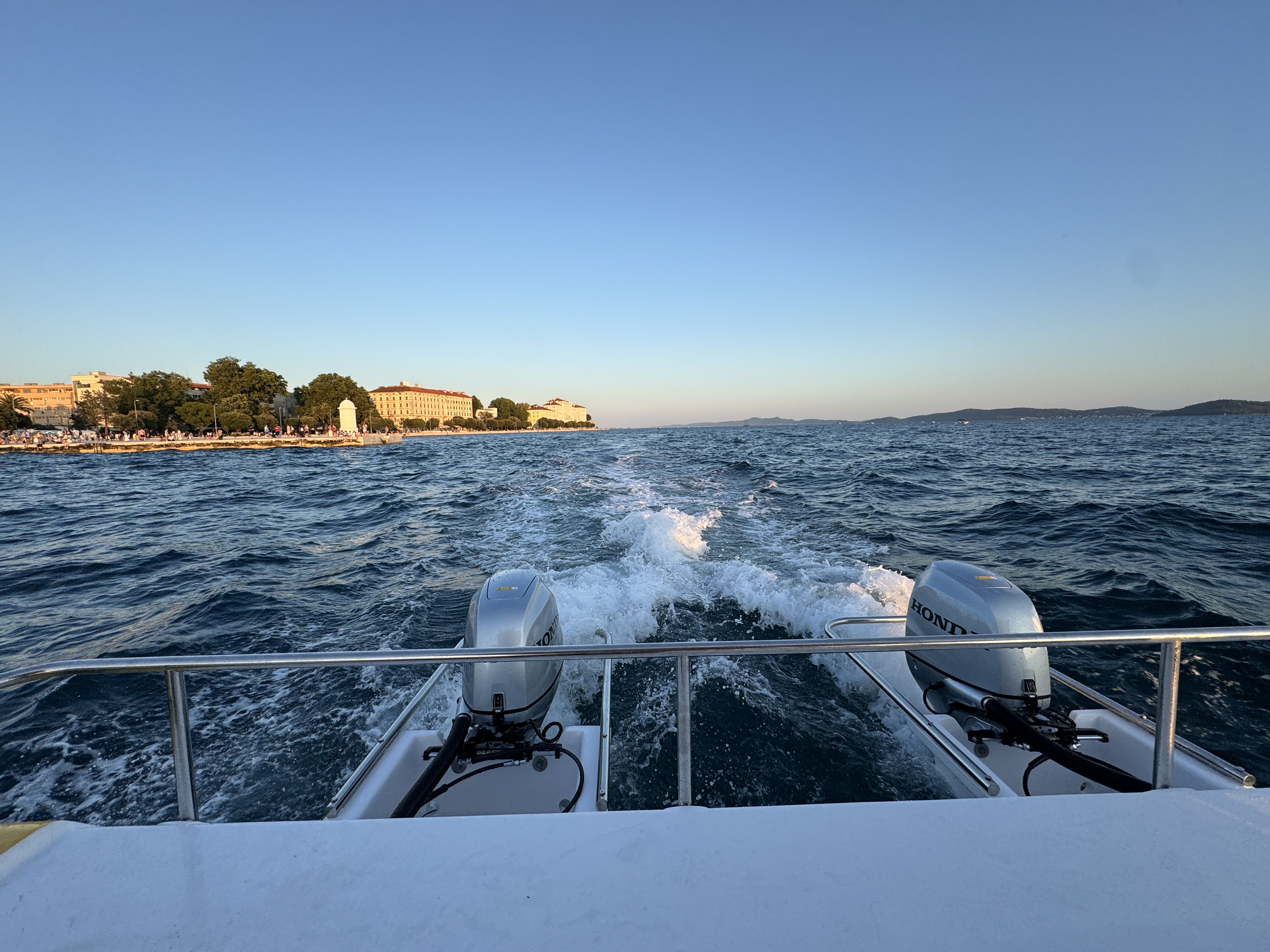 Am Abend ging’s los zur Stadterkundung – zu Fuss Richtung Meer (15 Min.), dann per Taxi-Boot direkt ins Zentrum von Zadar. Mal ehrlich: Wer braucht schon Uber, wenn’s ein Boot gibt? 🚤