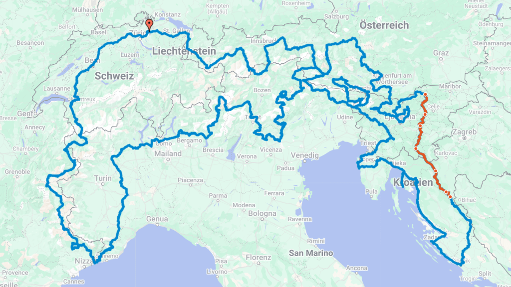 Um 8:00 Uhr starten wir vom BnB Plitvicer Queen Richtung Slovenj Gradec. Auf dem Weg zurück nach Slowenien überqueren wir etwa fünf- bis sechsmal die kroatisch-slowenische Grenze – willkommen im Grenzübertritts-Bingo durchs Hinterland!
