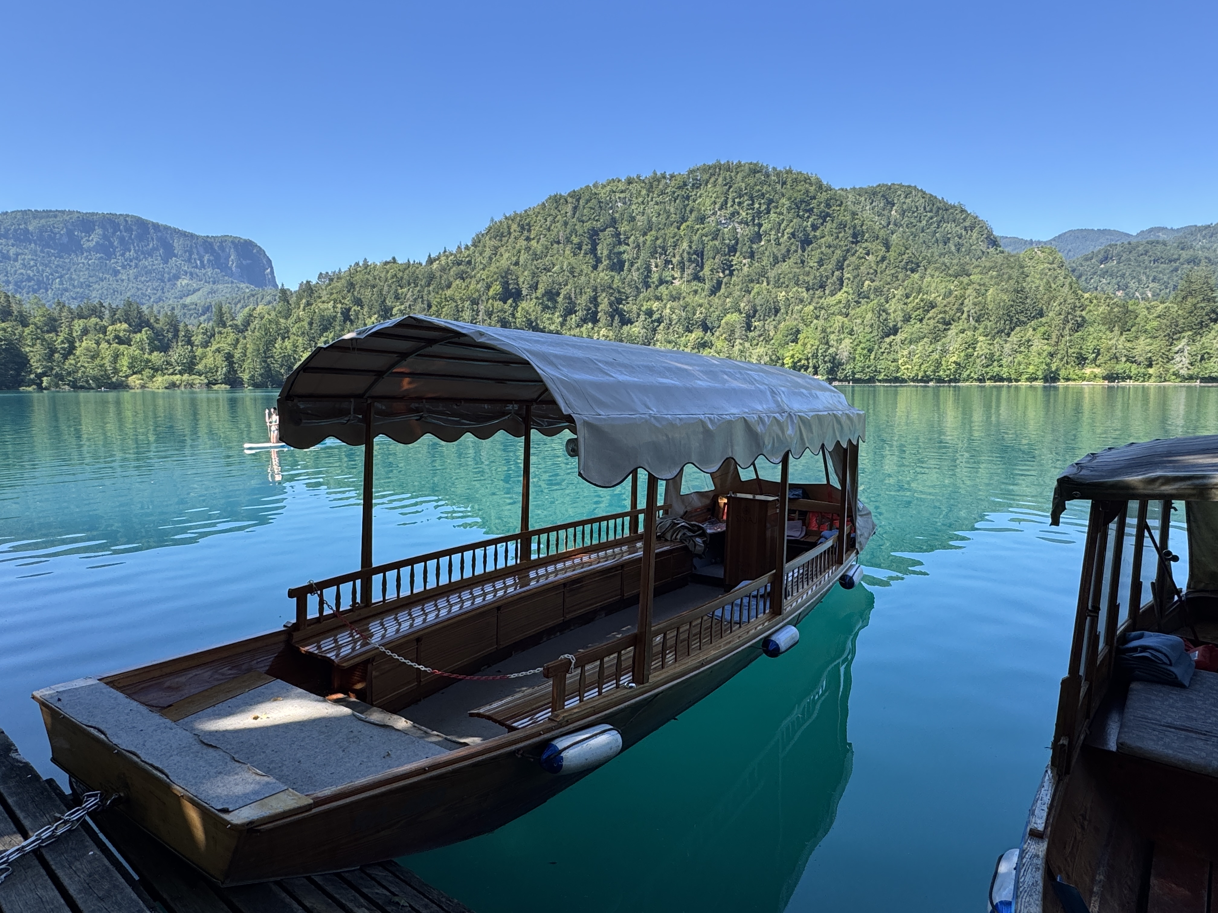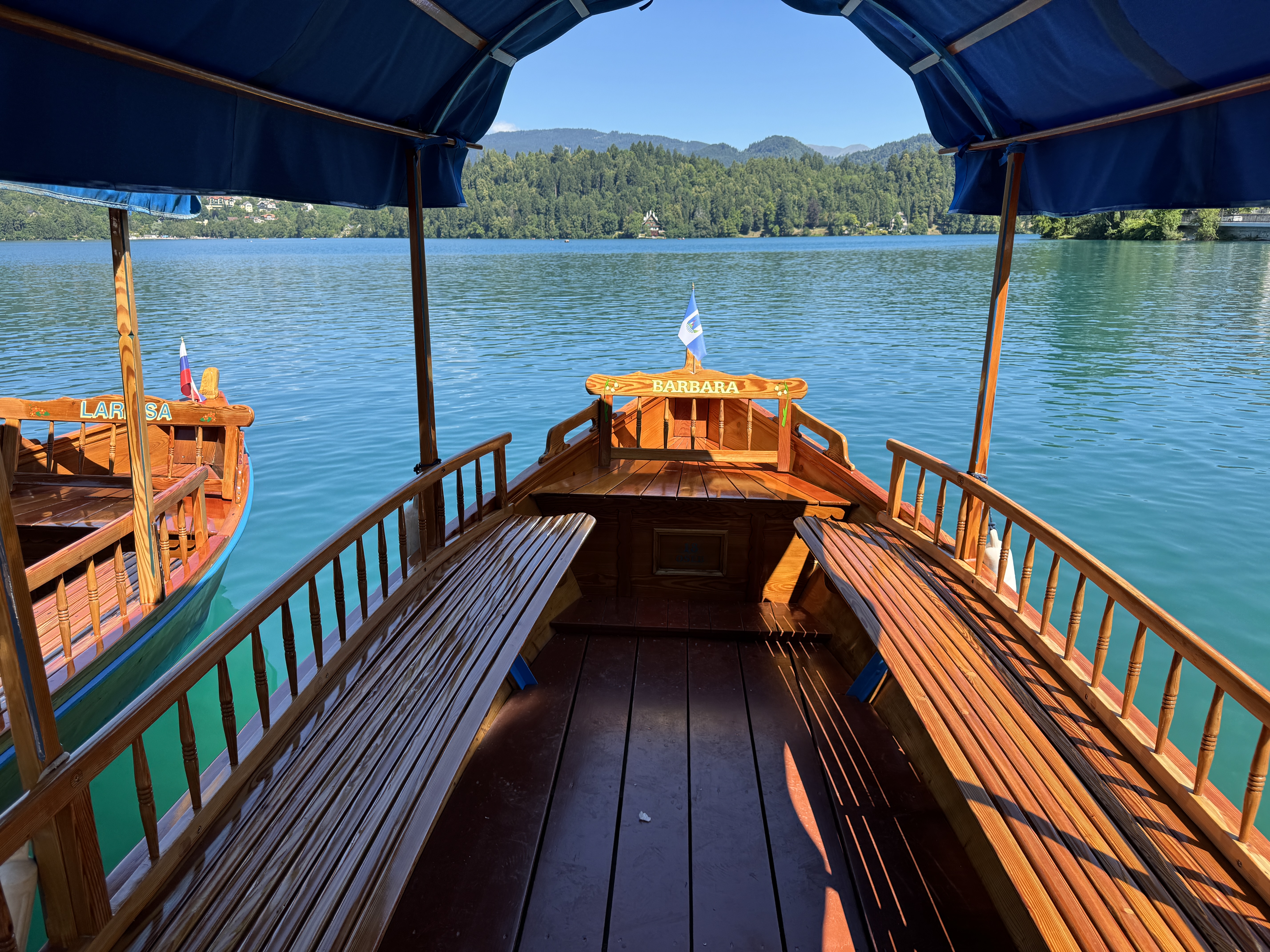 Wir lassen uns nicht lumpen und steigen direkt vor unserer Pension in eine der traditionellen Pletna-Boote – das sind die slowenischen Gondeln ohne Gesang, aber mit ordentlich Stil – und schippern gemütlich zur Insel. Die Wasserqualität? Glasklar! Und das Beste: rund um den See gibt’s Trinkbrunnen mit frischem Quellwasser. Premium-Service von Mutter Natur.