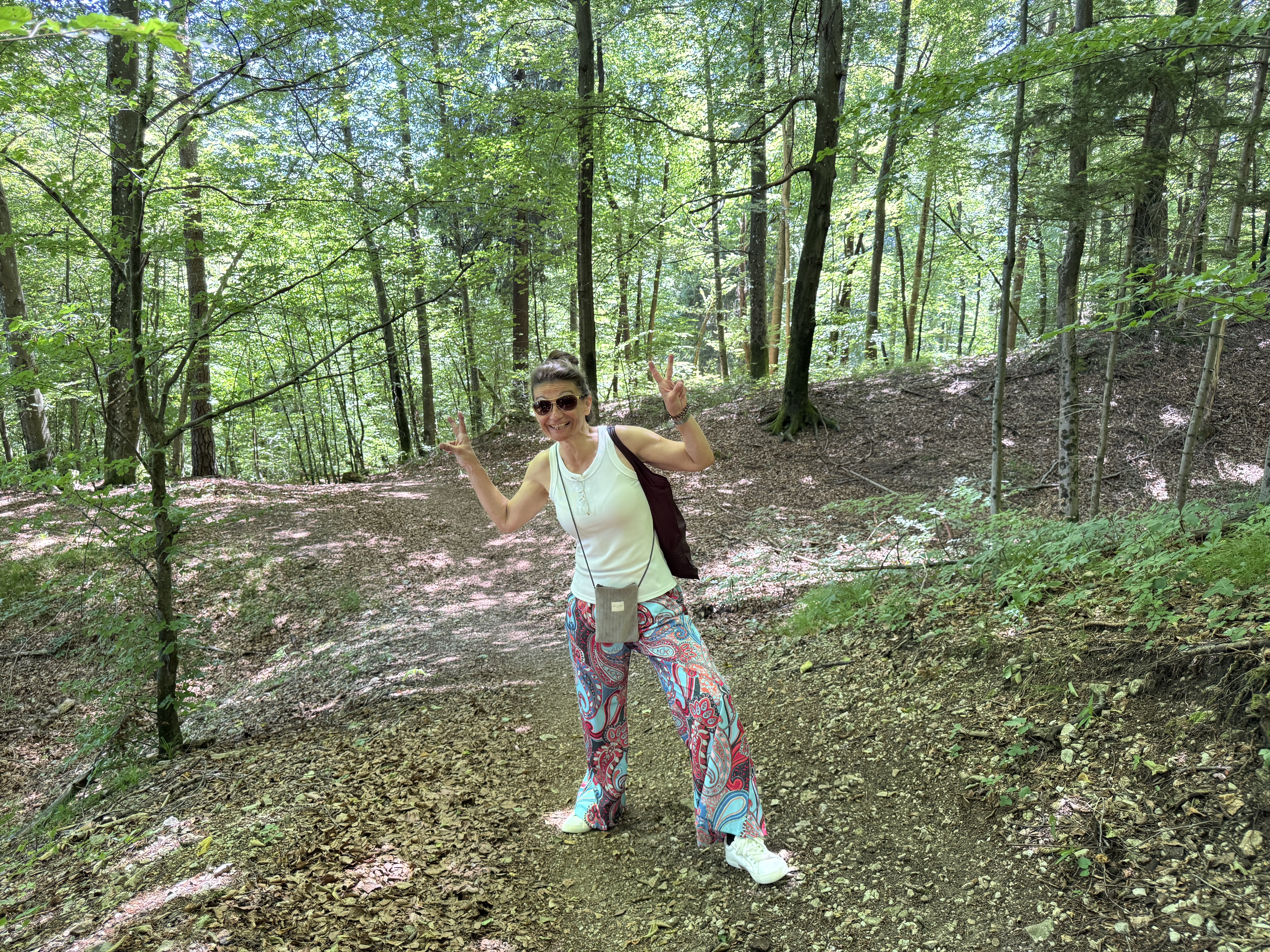 Runter ging’s schneller, wenn auch nicht unbedingt eleganter. Bei 33 Grad im Schatten und 120% Luftfeuchtigkeit wird jeder Schritt zur Mini-Sauna. Da hilft nur eins: Abkühlung im See. Und die gibt’s – natürlich – kostenlos dazu. Wir umrunden den See komplett, lassen kein Plätzchen aus und beenden die Wanderung nach rund 20.000 Schritten und fünf Stunden in der Sonne.