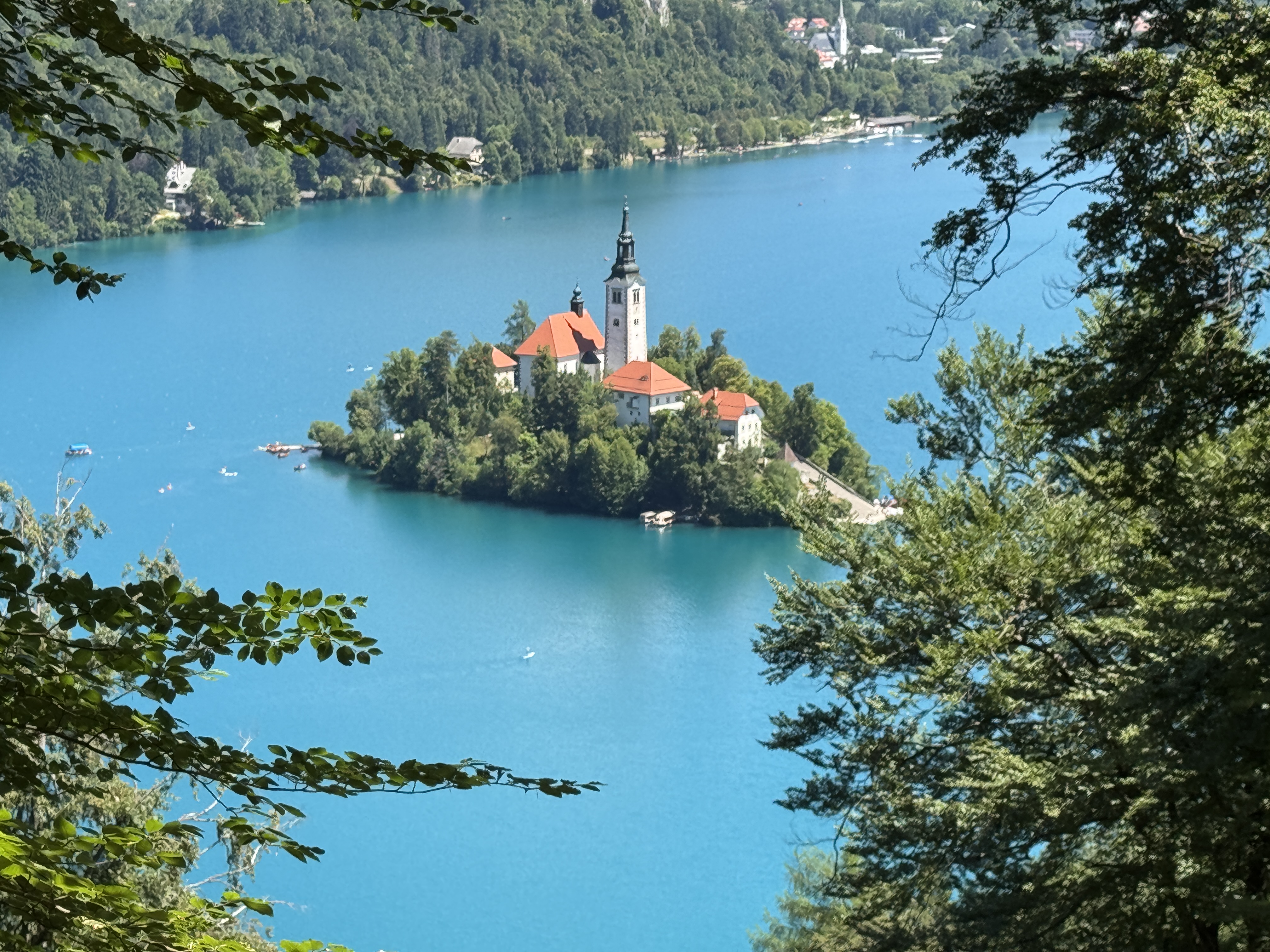 Mit jeder Menge Schnaufen, ein bisschen Fluchen und ein paar akrobatischen Klettereinlagen erreichen wir den Aussichtspunkt – und werden belohnt mit einem atemberaubenden Blick auf die Insel im See. Dieser Moment? Ganz grosses Kino. Und ja, auch der Schweiss hat sich gelohnt. Sagen wir jetzt zumindest 😂
