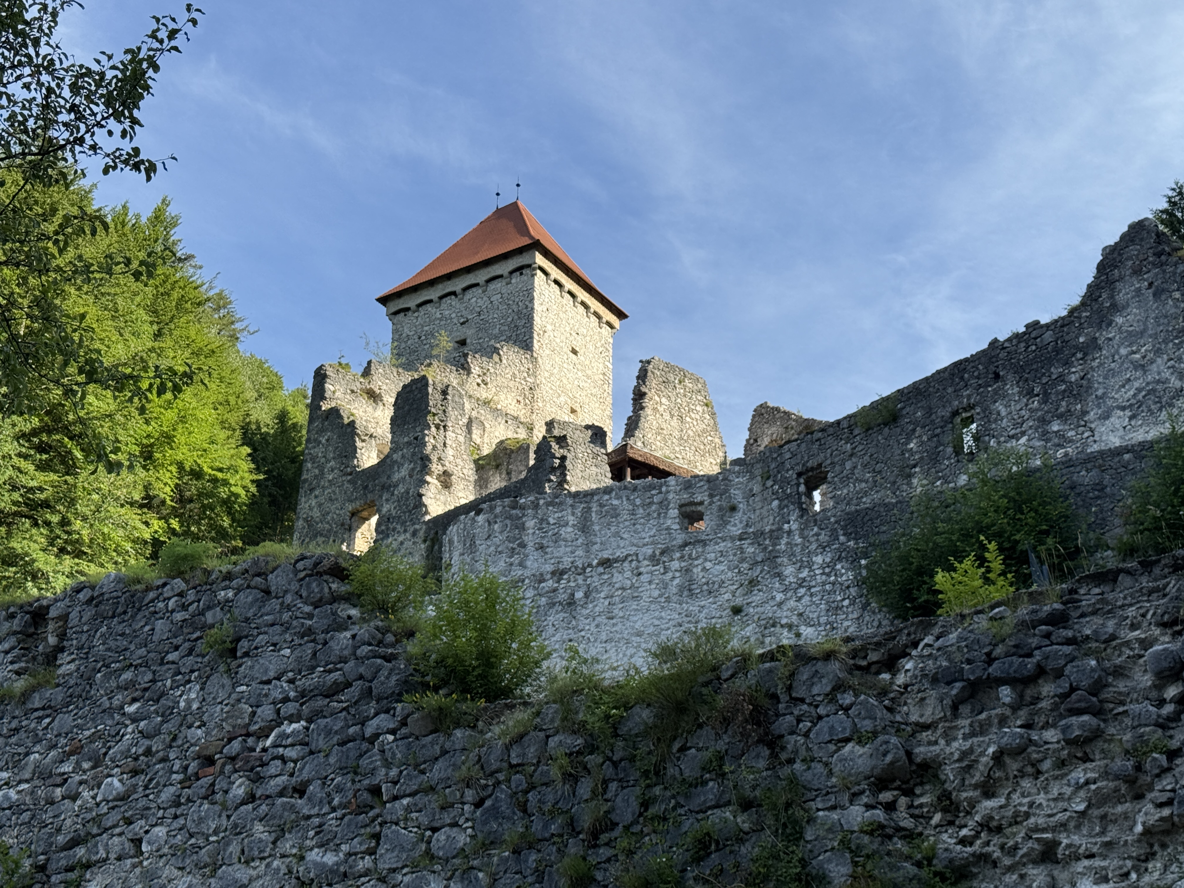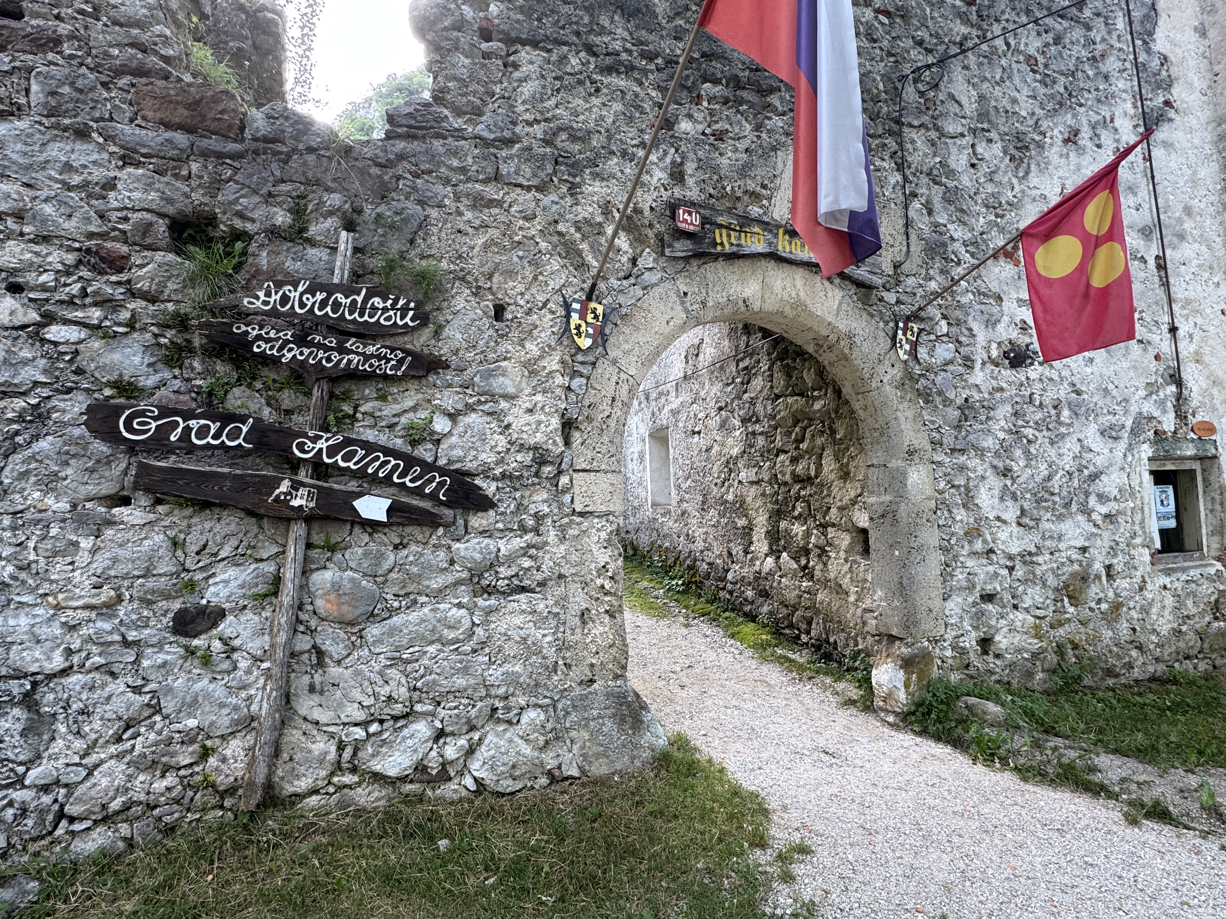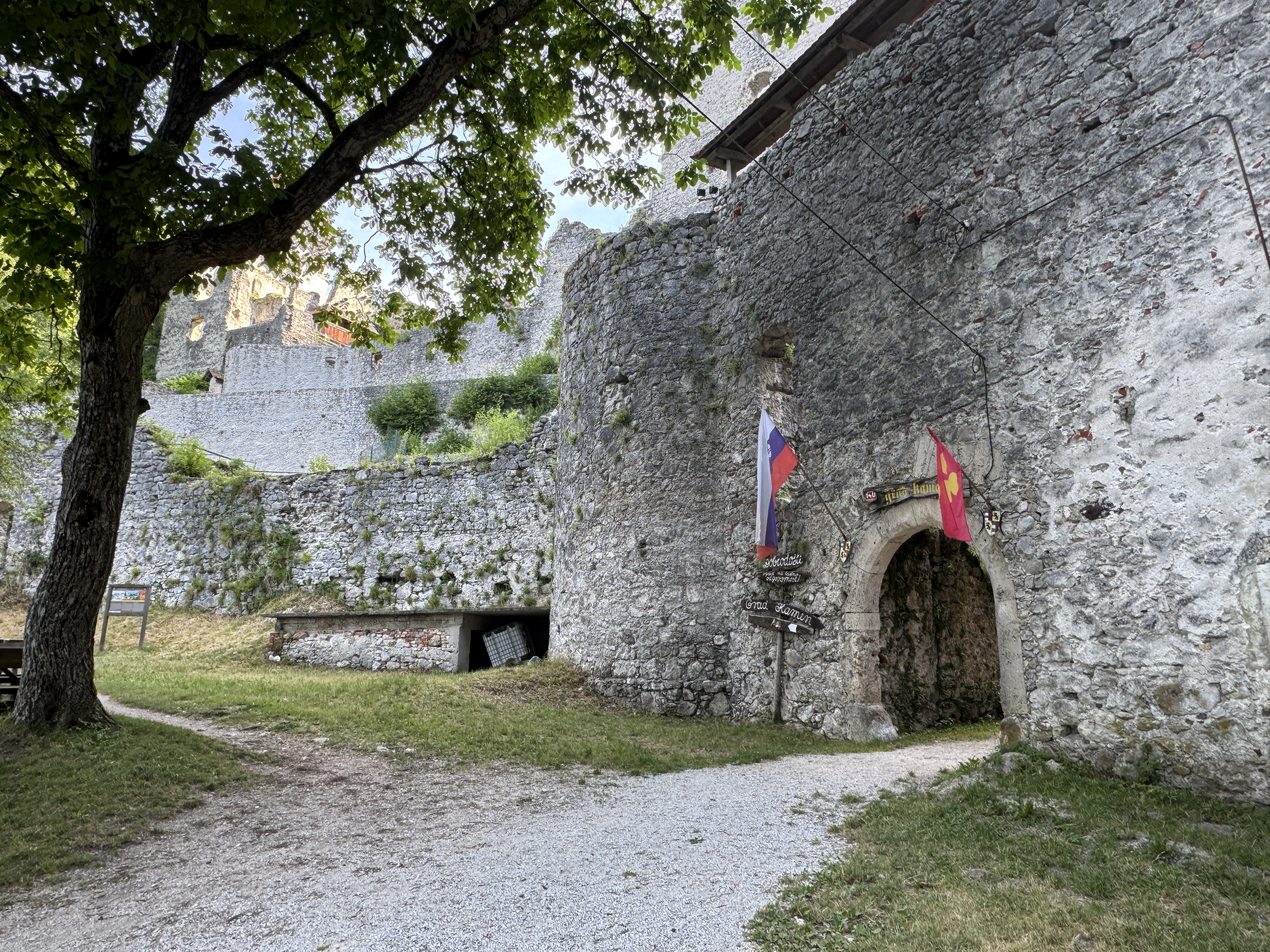Nach einem chilligen Tag in Bled ging’s endlich wieder auf die Mopeds – der Entzug war real. Erstes Ziel: die Burgruine Grad Kamen. Kurzer Fotostopp, ein paar dramatische Bilder geschossen – Blog freut sich – und weiter ging’s.